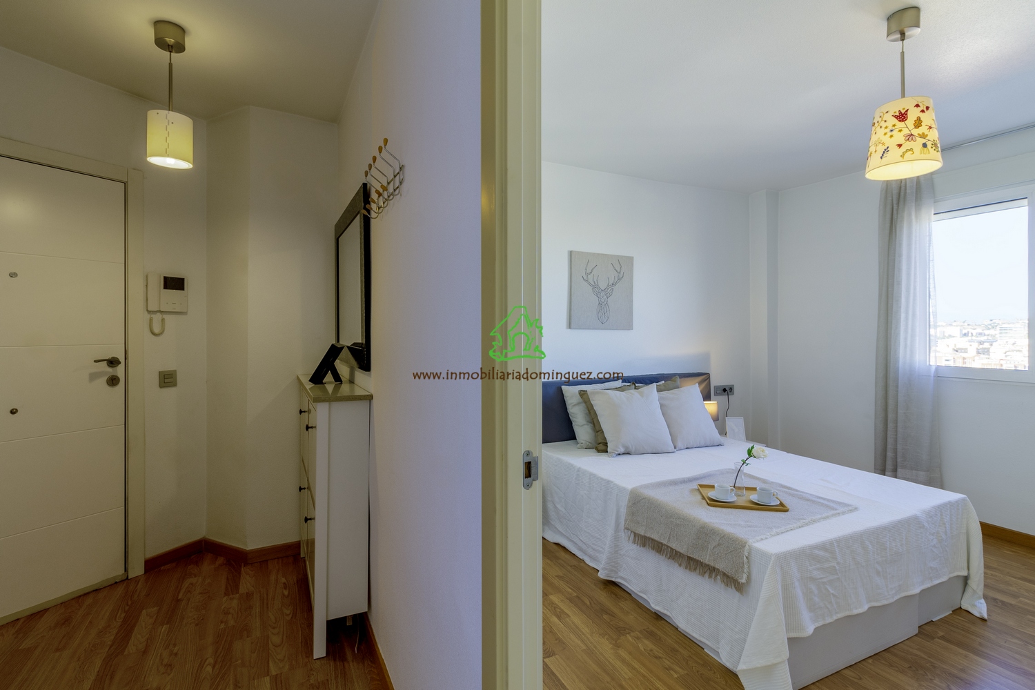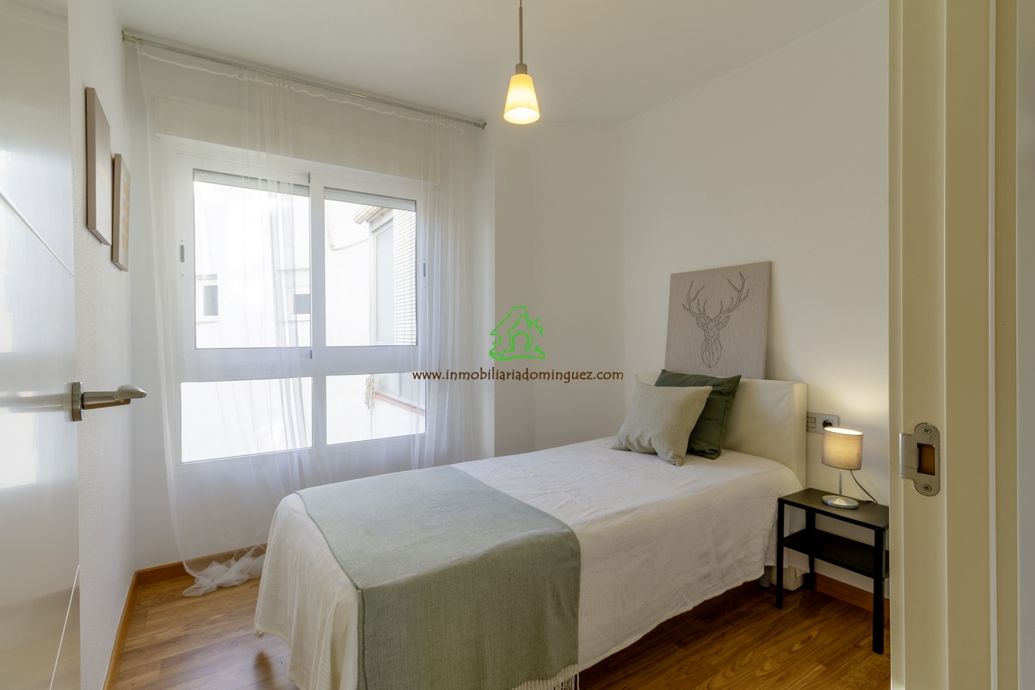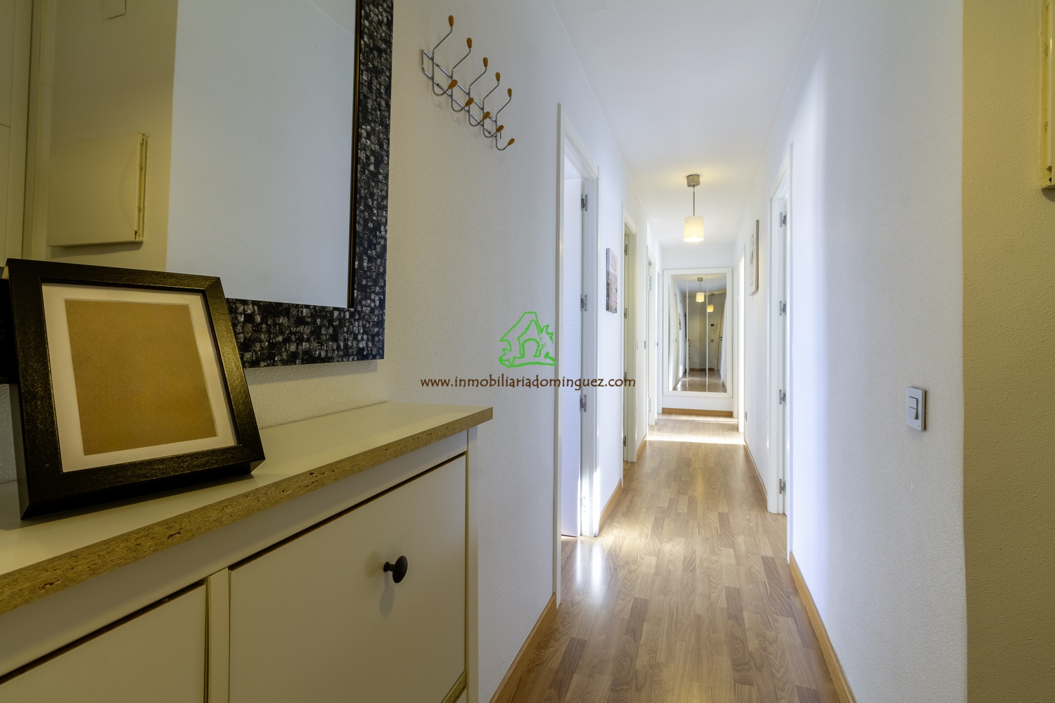 La propiedad se distribuye en 3 dormitorios (1 doble y 2 individuales), 2 baños completos, uno de ellos con ventana, un amplio salón-comedor de 30m² y una cocina independiente. Su altura nos proporciona unas espectaculares vistas despejadas, inundando de luz todas las estancias, logrando una agradable sensación de amplitud. Existe la posibilidad de adquirir una plaza de garaje en un parking cercano por 40.000€ adicionales.