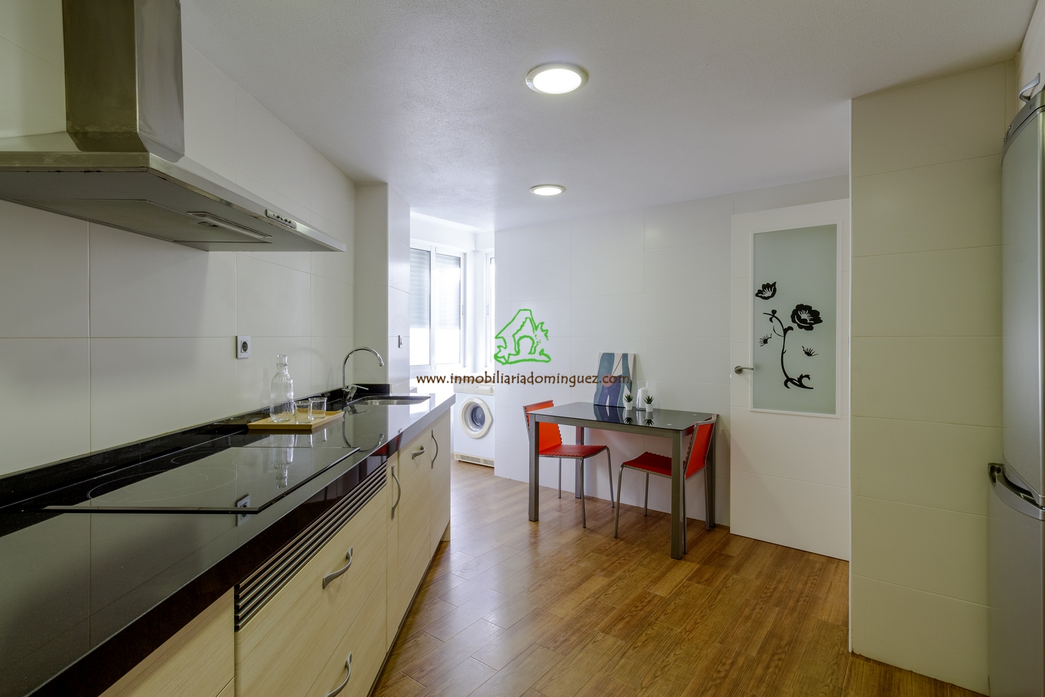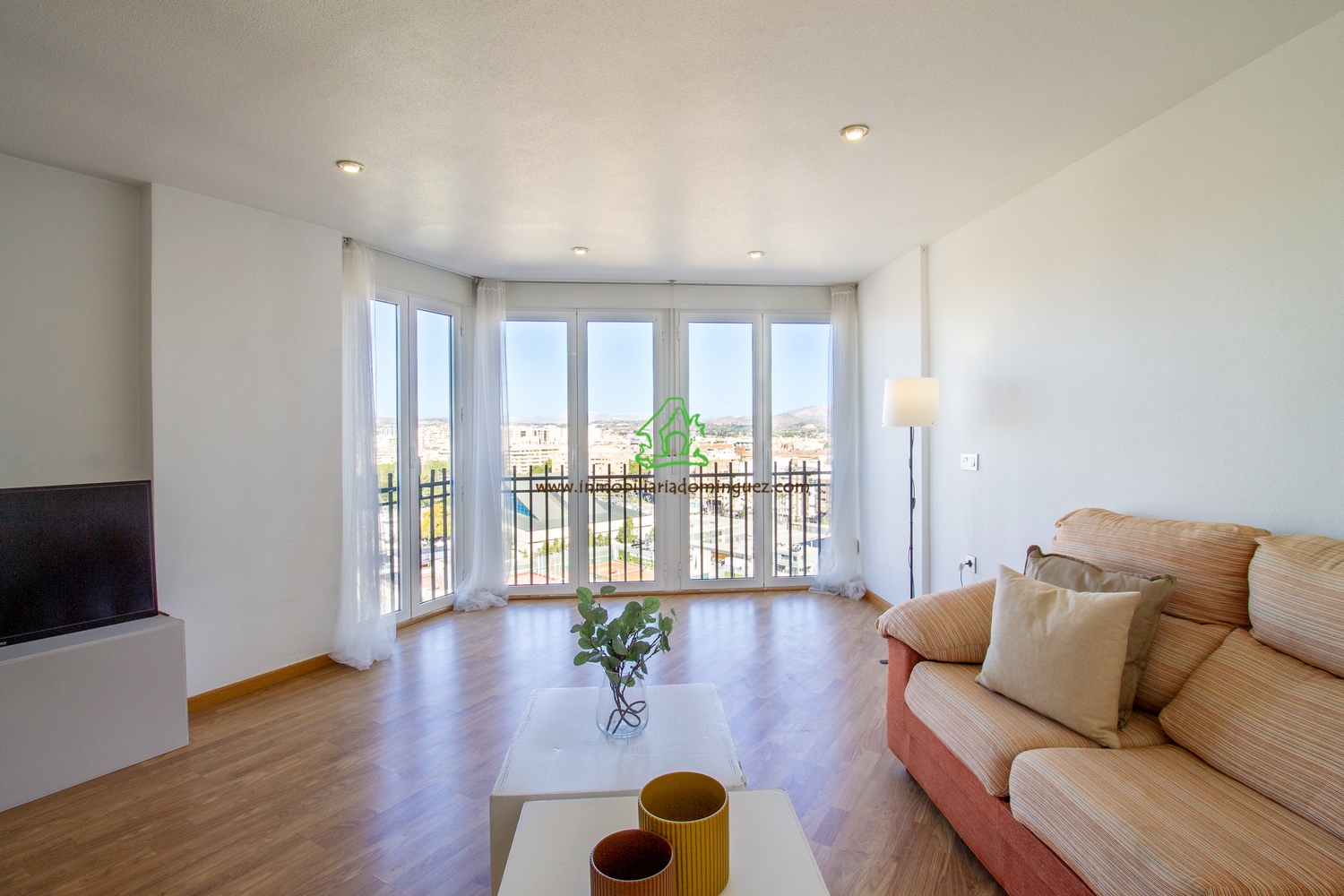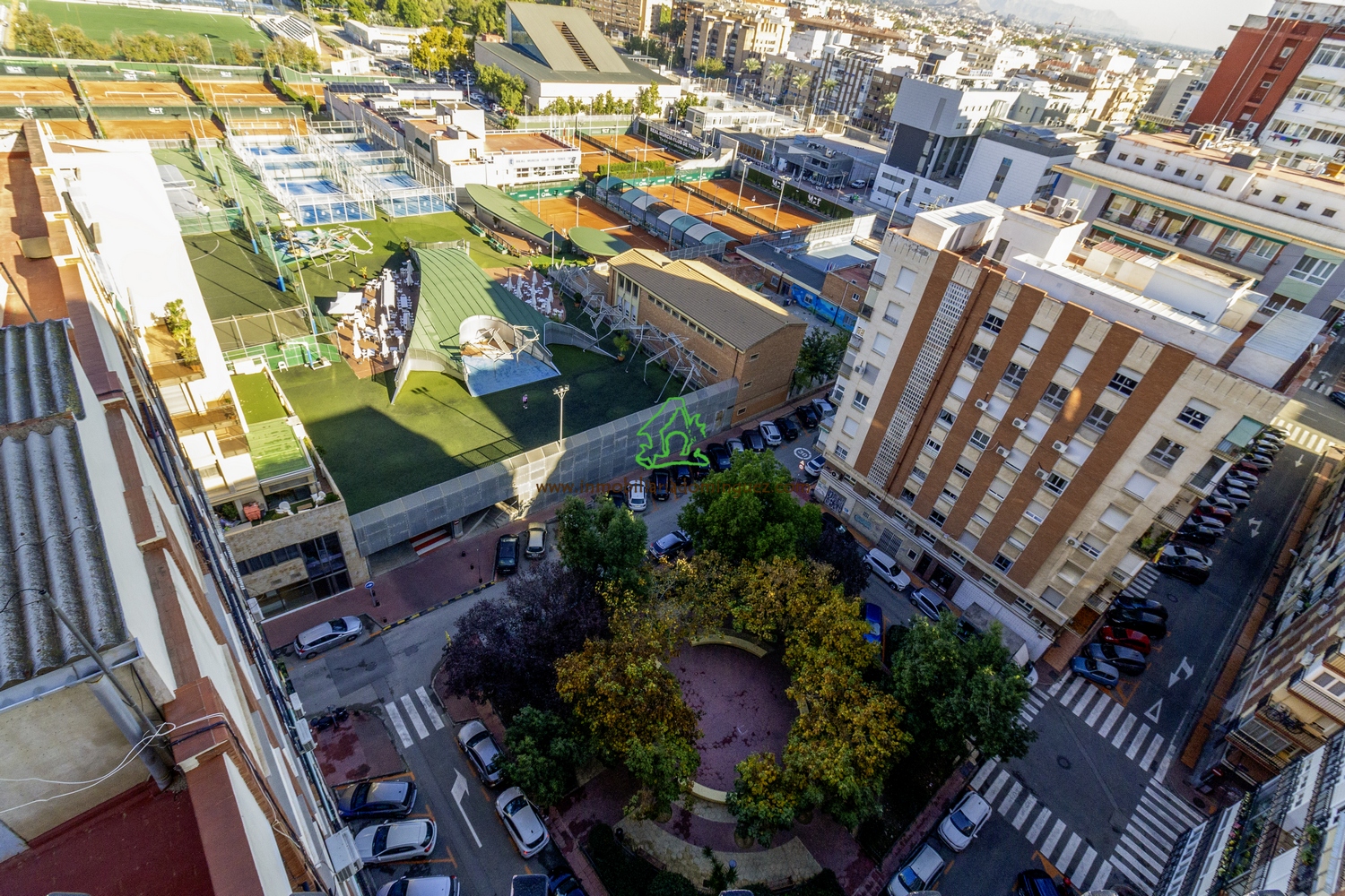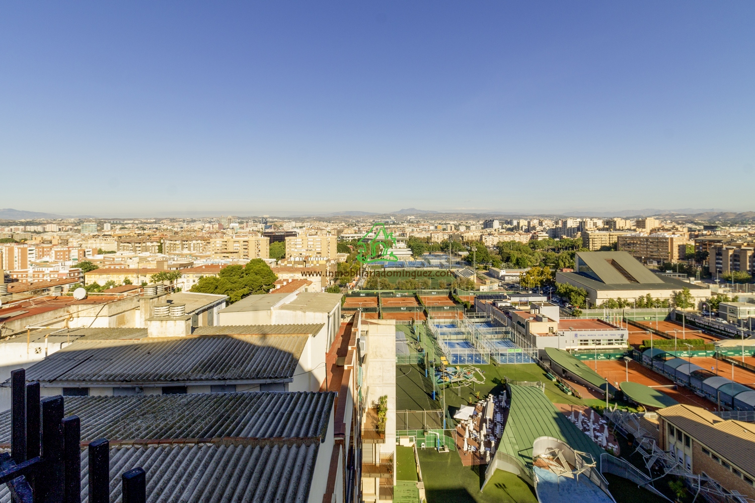 Esta luminosa vivienda, con una superficie de 111m² construidos, está situada en la planta 13 de un edificio con ascensor. Está ubicada en la plaza Díez de Revenga, a un paso de El Corte Inglés.